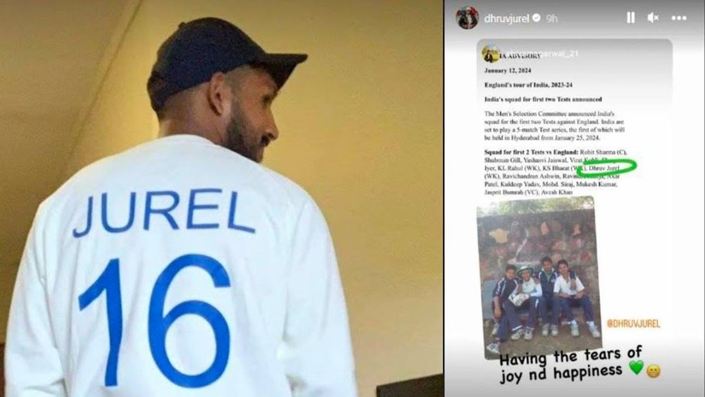 इंग्लैंड के खिलाफ पहले दो टेस्ट मैचों के लिए भारतीय टीम में चुने जाने के बाद ध्रुव जुरेल का खुशी का ठिकाना नहीं है। यह युवा खिलाड़ी केएल राहुल और केएस भरत के साथ टीम के तीन विकेटकीपर्स में से एक है। भारतीय क्रिकेट कंट्रोल बोर्ड (BCCI) ने शुक्रवार, 12 जनवरी को टीम की घोषणा की। टीम में अपना नाम देखने के बाद 22 वर्षीय खिलाड़ी अपने प्रशंसकों और शुभचिंतकों के साथ अपनी खुशी शेयर करने से खुद को रोक नहीं सका।