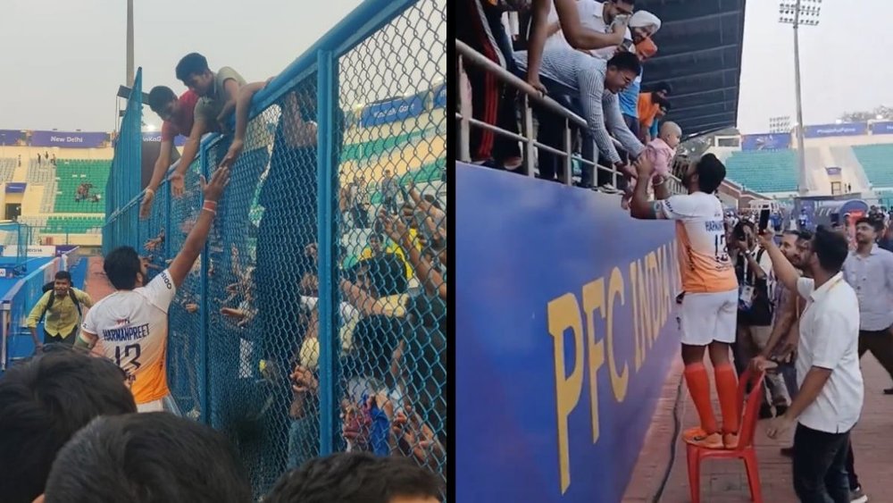 हरमनप्रीत जैसे ही मीडिया से बात करके फैंस की ओर मुड़े स्टेडियम सरपंच साहब के नारे लगने लगे। हरमनप्रीत कौर पहले तो स्टैंड्स के पास ही खड़े होकर हाथ हिला रहे थे। थोड़ी देर बाद वह जाली के पास पहुंचे तो फैंस उनसे हाथ मिलाने के लिए जाली के ऊपर चढ़ गए। हरमन ने हाथ स्ट्रेच किया और मिलाया। वहीं कुछ फैंस कूदकर मैदान पर आए।