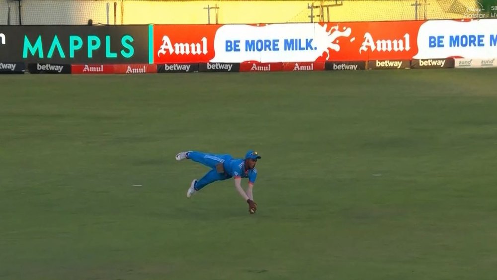 दरअसल, साउथ अफ्रीका की पारी के 33वें ओवर में आवेश खान को हेनरिक क्लासेन का विकेट मिला। साउथ अफ्रीका को ये पांचवां झटका था। आवेश के इस ओवर की दूसरी गेंद पर क्लासेन ड्राइव शॉट खेलना चाहते थे, लेकिन गेंद बैट के उपर के हिस्से पर लगी और मिड ऑफ पर खड़े साई सुदर्शन ने अपने आगे की तरफ लंबी डाइव लगाकर इस मुश्किल कैच को लपक लिया। आवेश खान की लेग कटर गेंद को क्लासेन समझ नहीं पाए और गलती कर बैठे। रही सही कसर सुदर्शन के बेहतरीन कैच ने पूरी कर दी।