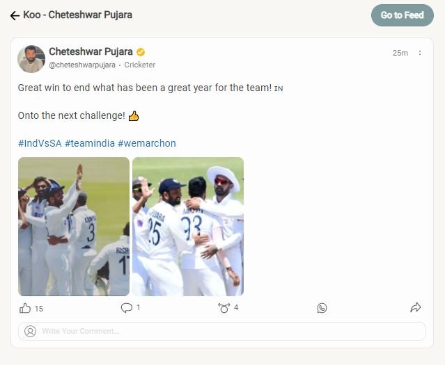 इस साल की शुरुआत भारत ने ब्रिसबेन में ऐतिहासिक जीत के साथ की थी और अब इस साल का अंत टीम इंडिया ने सेंचुरियन में पहली टेस्ट जीत से किया है। इसके अलावा इस साल टीम इंडिया ने इंग्लैंड के लॉर्ड्स और द ओवल में भी जीत दर्ज की थी। 2018 में भारत जोहान्सबर्ग, नॉटिंघम, एडिलेड और मेलबर्न में टेस्ट मैच जीता था।