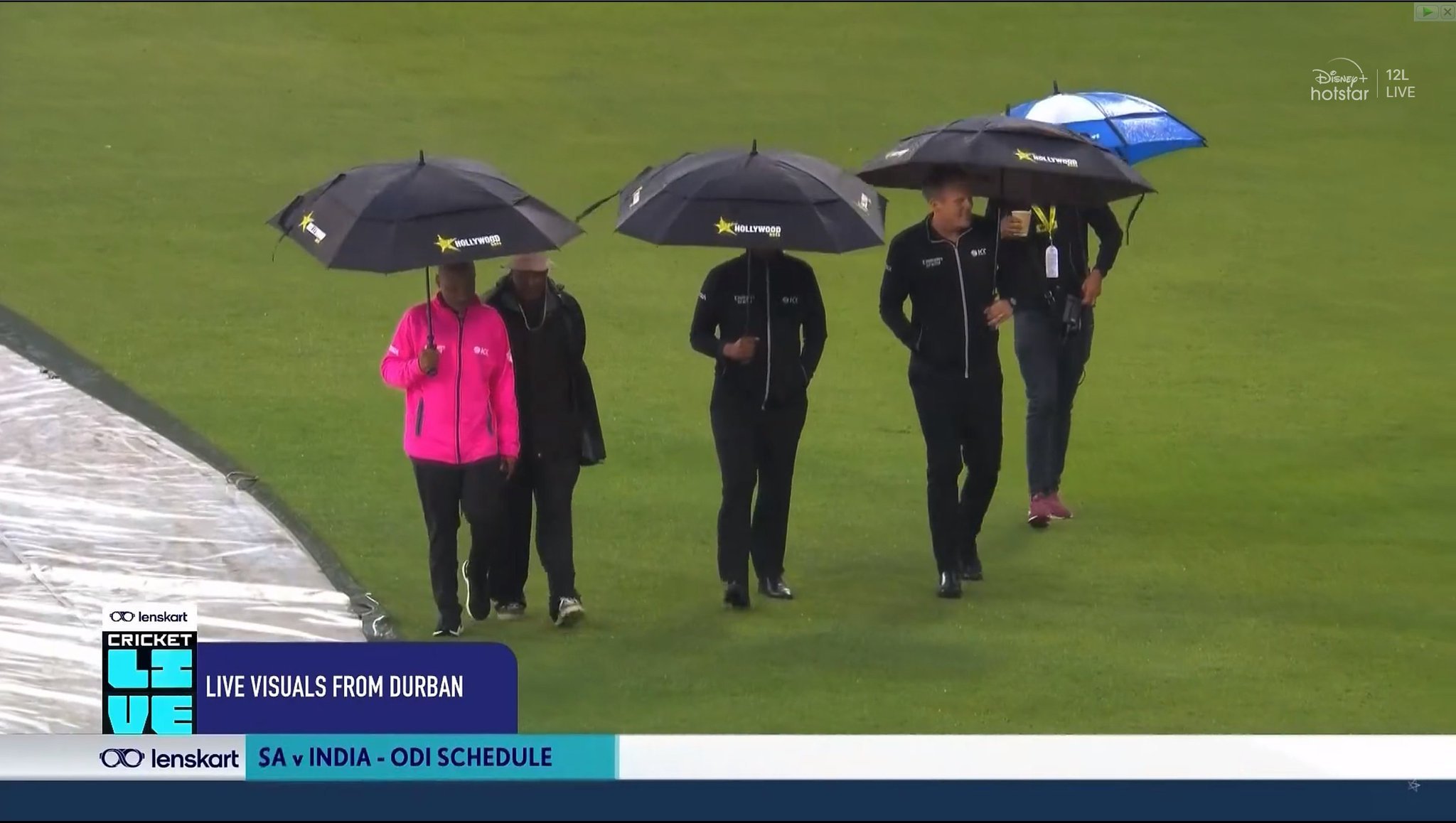 डरबन में मैच शुरू होने के आसार नजर नहीं आ रहे हैं। बारिश थोड़ी भी देर के लिए नहीं रुकी है। हल्की ही सही लेकिन बारिश लगातार हो रही है।