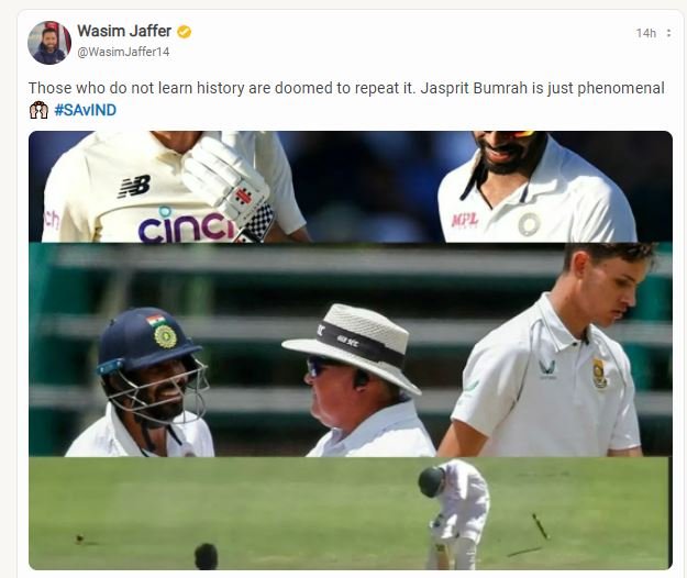 आखिरकार बुमराह ने एक शानदार अंदर आने वाली गेंद से मार्को यानसन को बोल्ड किया। विराट कोहली ने पूरी जोर से दहाड़ लगाते हुए इस विकेट का आनंद उठाया। बुमराह की यह 144 की गति से लेंथ गेंद थी। अपेक्षा से कम उछली गेंद, मार्को ने फ्रंटफुट पर आकर गेंद को रोकने का प्रयास किया, लेकिन गेंद ने बल्ले को छकाया और उसके बाद विकेट से मुलाकात करने चली गई। मार्को 7 रन बनाकर पवेलियन लौटे। उस समय टीम का स्कोर 62.2 ओवर में 7 विकेट पर 176 रन था।