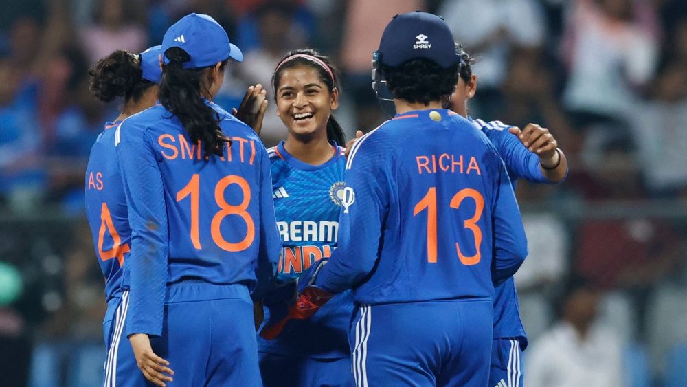 लक्ष्य का पीछा करते हुए भारत की सलामी जोड़ी एक बार फिर अच्छी शुरुआत दिलाने में नाकाम रही। शेफाली वर्मा (छह रन) तीसरे ओवर में फ्रेया केम्प की गेंद पर बोल्ड हो गयी। मंधाना को इसके बाद जेमिमा का अच्छा साथ मिला। रोड्रिग्स ने एक्लेस्टोन के खिलाफ दो चौके लगाये तो वही मंधाना ने इसी गेंदबाज के खिलाफ नौवें ओवर में छक्का लगाकर टीम का अर्धशतक पूरा किया। बायें हाथ की इस सलामी बल्लेबाज ने 11वें ओवर में फ्रेया केम्प के खिलाफ अपनी पारी का दूसरा छक्का जड़ा। अगले ओवर में डीन ने जेमिमा को पगबाधा कर दूसरे विकेट के लिए 57 रन की साझेदारी को तोड़ा। जेमिमा ने 33 गेंद में चार चौके की मदद से 29 रन बनाये।