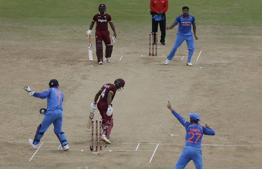 251 रनों का पीछा करने उतरी वेस्टइंडीज को भारतीय गेंदबाजों ने ढेर कर दिया और मेहमान देश 93 रनों से जीत गया। विंडीज बल्लेबाजों की शुरुआती बेहद खराब रही और उसके 84 रनों पर 4 विकेट गिर चुके थे। इसके बाद टीम को संभालने की जिम्मेदारी थी, कप्तान जेसन होल्डर के कंधों पर। लेकिन वह टीम की नैया पार लगाने में नाकाम रहे। मैच के 20वें ओवर में जब अश्विन गेंद डालने आए तो उन्होंने उस पर एक शॉट मारने की कोशिश की, लेकिन बॉल उनसे मिस हो गई और महेंद्र सिंह धोनी ने उनकी गिल्लियां बिखेर दीं। धोनी वनडे क्रिकेट में 100 स्टंपिंग करने वाले पहले बल्लेबाज बनने से महज 3 कदम दूर हैं।