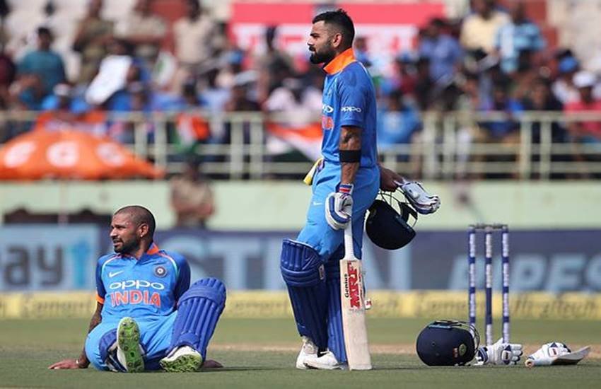 India vs West Indies, Ind vs WI ODI Series 2018: क्रिकेट के मैदान पर जब कोई खिलाड़ी अपना जलवा बिखेरता है तो फिर उसको सेलिब्रेट करने का अंदाज भी उसका अपना होता है। हर खिलाड़ी कुछ अलग अंदाज में अपनी खुशी जाहिर करता है। वहीं अगर टीम इंडिया की बात करें तो इस लिस्ट में शिखर धवन का अंदाज सबसे जुदा है। जब मैदान में वो बल्लेबाजी करने उतरते हैं तो उनका बल्ला ही उनकी काबिलियत का प्रदर्शन करता है, और जितनी देर वो मैदान में रहते हैं विपक्षी टीम के गेंदबाजों पर दबाव देखा जा सकता है। वहीं धवन अपनी धमाकेदार बल्लेबाजी के अलावा एक और कारण से खासे सुर्खियों में रहते हैं वो है उनका अपनी खुशी को सेलिब्रेट करने का अंदाज।