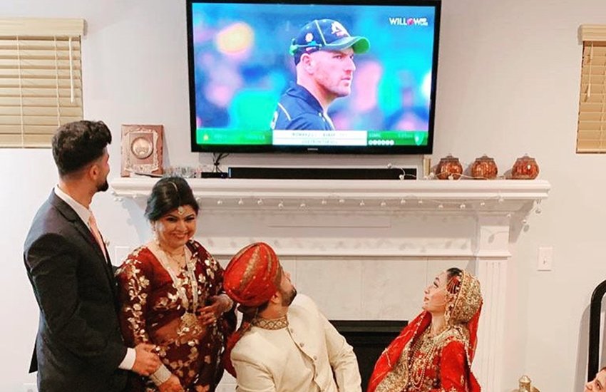 क्रिकेट का एक ऐसा ही फैन अमेरिका के मिशिगन प्रांत के डेट्रायट में रहता है। हसन तसलीम नाम के इस क्रिकेट प्रशंसक ने इंटरनेशनल क्रिकेट काउंसिल (ICC) को अपनी शादी के दिन की एक तस्वीर भेजी। ICC ने हसन की उस तस्वीर को अपने ट्विटर हैंडल पर साझा किया है। हसन ने तस्वीर के साथ ICC को एक पत्र भी भेजा था।