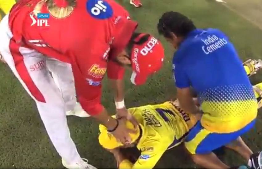 धोनी जब बल्लेबाजी कर रहे थे तब वह थोड़ी परेशानी में नजर आ रहे थे। बल्लेबाजी के दौरान धोनी को पीठ में दर्द की शिकायत हुई। पीठ दर्द से परेशान धोनी पहले तो इसे झेलते रहे लेकिन जब दर्द बढ़ने लगा तो उन्होंने फिजियो को बुलाया। फिजियो ने धोनी को मैदान पर उल्टा लिटाकर पीठ पर मसाज करना शुरू किया। मसाज करवा रहे महेंद्र सिंह धोनी मुस्कुरा रहे थे। उनको मसाज करवाता देख किंग्स इलेवन पंजाब के युवराज सिंह वहां पास आए और वो भी माही के सर को दबा कर उनसे मजे लेते दिखे।