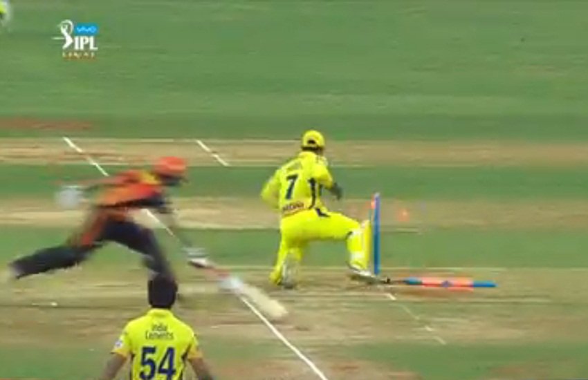 वानखेड़े स्टेडियम में आज आईपीएल 11 का फाइनल मुकाबला हो रहा है। मुंबई के वानखेड़े स्टेडियम में चेन्नई सुपर किंग्स और सनराइजर्स हैदराबाद के बीच रोमांचक माच हो रहा है। टॉस हारने के बाद पहले बल्लेबाजी करने उतरी सनराइजर्स हैदराबाद के लिए पारी की शुरुआत करने शिखर धवन और श्रीवत्स गोस्वामी की जोड़ी उतरी। पहले ओवर में दोनों 6 रन जोड़े लेकिन दूसरे ओवर की पांचवीं गेंद पर दूसरा रन लेने के प्रयास में गोस्वामी रन आउट होकर पवेलियन लौट गए। उन्होंने 5 रन बनाए। गोस्वामी को सीएसके के कप्तान और विकेट कीपर महेंद्र सिंह धोनी ने चलता किया। धोनी ने अपने चिरपरिचित अंदाज में चीते सी फुर्ती दिखाते हुए गोस्वामी का विकेट अपनी टीम को सौंप दिया। खबर लिखे जाने तक हैदराबाद की टीम ने 6 ओवर में 1 विकेट के नुकसान पर 43 रन बना लिये हैं। कप्तान केन विलियम्सन 17 तो वहीं शिखर धवन 18 रन बनाकर क्रीज पर मौजूद हैं।
