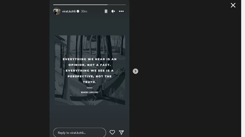 विराट कोहली ने इंस्टाग्राम पर शेयर की स्टोरी