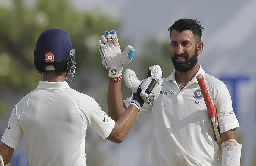 मुकुंद के जाने के बाद पुजारा और धवन ने संयम से खेलते हुए पारी को आगे बढ़ाया और मेजबान टीम के गेंदबाजों पर पूरी तरह से हावी हो गए। श्रीलंकाई गेंदबाज इन पर रोक नहीं लगा सके और ये दोनों बड़ी आसानी से अपनी मर्जी के मुताबिक रन बनाते रहे। धवन और पुजारा की जोड़ी ने 200 रनों से ज्यादा की साझेदारी हुई।