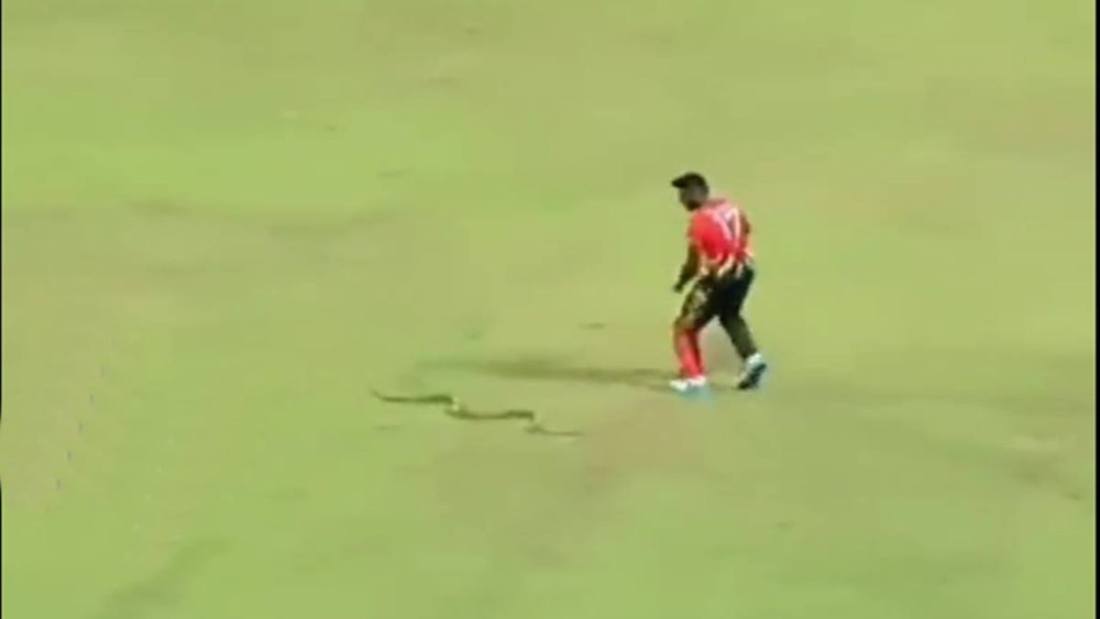 सोशल मीडिया पर वायरल हो रहे वीडियो में जाफना की बल्लेबाजी के दौरान सांप मैदान में रेंगता दिख रहा है। कैंडी के तेज गेंदबाज इसुरु उदाना ने इसे अपने बगल में देखा तो उनके होश उड़ गए। वह सांप पर पैर रखने से बाल-बाल बचे। तेज गेंदबाज के रिएक्शन से पता चलता है कि सांप को देखकर उनकी क्या हालत थी।