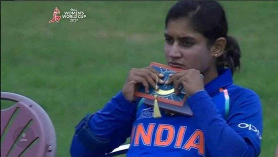 Only Thing Cooler Than Mithali Raj Is Her Bookmark. #MithaliRaj#WWC17 #INDvPAK #PakvInd #IndWvPakW #PAKwvINDw pic.twitter.com/H6NXK10lmw