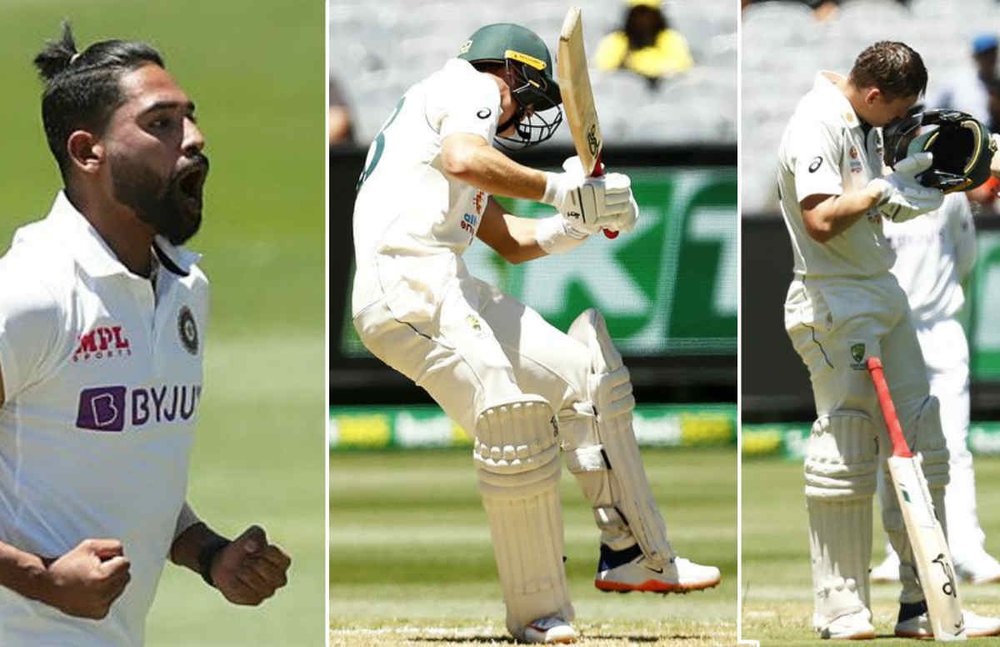 भारत और ऑस्ट्रेलिया के बीच मेलबर्न में चार टेस्ट मैचों की सीरीज का दूसरा मुकाबला खेला जा रहा है। टीम इंडिया ने गेंदबाजी में शानदार प्रदर्शन करते हुए टेस्ट के पहले दिन ऑस्ट्रेलिया को पहली पारी में ऑलआउट कर दिया। कंगारू टीम 195 रन ही बना सकी। उसके लिए युवा बल्लेबाज मार्नस लाबुशाने ने सबसे ज्यादा 48 रन बनाए। लाबुशाने को बल्लेबाजी के दौरान खतरनाक गेंदों का सामना करना पड़ा। एक बार तो वे मोहम्मद सिराज की गेंद पर बाल-बाल बच गए।