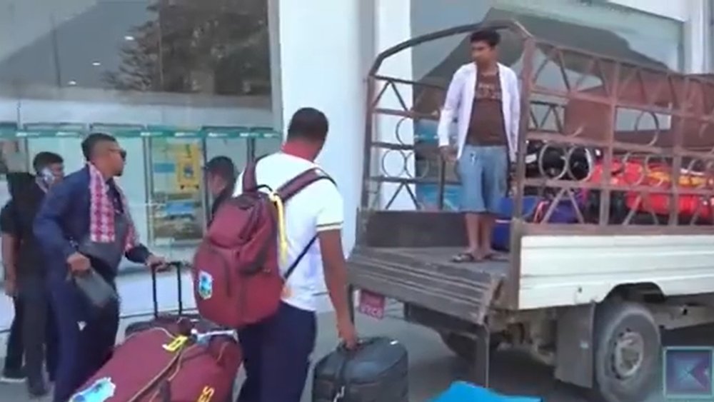 खिलाड़ी अपना सामान एयरपोर्ट से खुद ही लादकर बाहर निकले और उन्होंने उसे ‘छोटा हाथी’ (छोटा लोडर) पर चढ़ाया। यही नहीं जिस बस से खिलाड़ियों को एयरपोर्ट से होटल जाना था वह भी वातुनुकूलित (AC) नहीं थी। सोशल मीडिया पर वेस्टइंडीज के खिलाड़ियों का अपना सामाना ढोकर ‘छोटा हाथी’ पर लादते और बिना एसी वाली बस पर चढ़ने का वीडियो वायरल है। यूजर्स उस पर तरह तरह की प्रतिक्रियाएं दे रहे हैं। नीचे आप भी वह वीडियो देख सकते हैं।