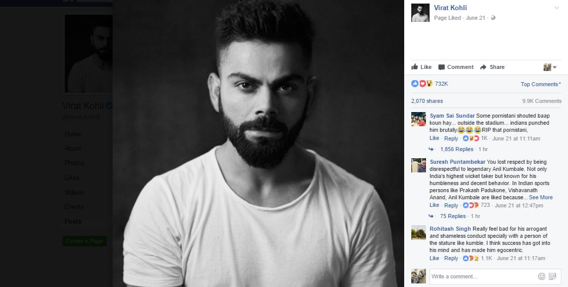 टीम इंडिया के कप्तान विराट कोहली मैदान पर चौकों-छक्कों की जितनी बारिश करते हैं, उतना ही सोशल मीडिया पर एक्टिव भी रहते हैं। किसी जमाने में बेहद गोलमटोल और जंक फूड के दीवाने रहे विराट आज दुनिया भर में बसे भारतीयों के स्टाइल आइकन बन गए हैं। अंतरराष्ट्रीय क्रिकेट में डेब्यू के बाद विराट कोहली को कई बार असफलताओं का सामना करना पड़ा, लेकिन अपनी लगन और मेहनत के कारण वह मौजूदा दौर में दुनिया के सर्वश्रेष्ठ बल्लेबाजों में से एक हैं। जैसे-जैसे विश्व क्रिकेट में विराट कोहली का कद बढ़ा, उनकी फैन फॉलोइंग बढ़ती चली गई। विराट की फेसबुक पर फैन फॉलोइंग बॉलिवुड सुपरस्टार सलमान खान, दीपिका पादुकोण, इंटरनेशनल स्टार प्रियंका चोपड़ा से कहीं ज्यादा है। यहां तक कि घर-घर में पहचान रखने वाले कॉमेडियन कपिल शर्मा भी विराट से कोसों पीछे हैं।