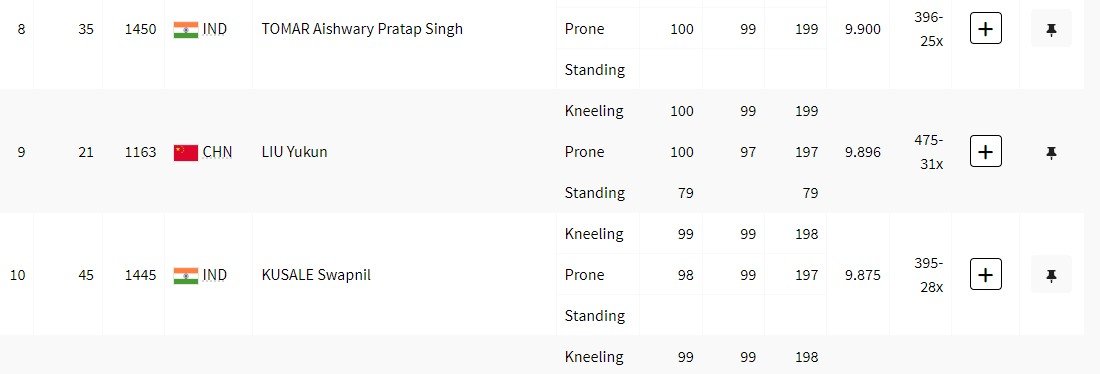 स्वप्निल ने 100 में से 99 अंक प्राप्त किए और ऐश्वर्य प्रताब सिंह ने 98 अंक हासिल किए। इस सीरीज में तीन निशानेबाजों ने 100 अंक हासिल किए।भारतीयों का प्रदर्शन खराब नहीं रहा। अभी उनके पास समय है।