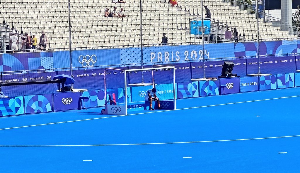 पीआर श्रीजेश सबसे पहले मैदान पर उतरे। वह हाफ लाइन पर खड़े हुए और गोल पोस्ट को देखा। वह अकेले गोलपोस्ट पर गए और उसके बीच जाकर बैठ गए। वह काफी भावुक नजर आ रहे थे।