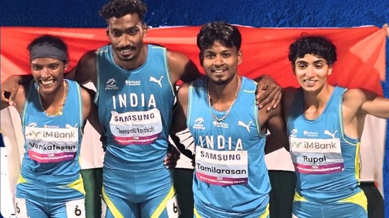 भारत ने मिक्स्ड रिले में स्वर्ण पदक जीता। भारतीय मिक्स्ड टीम में रूपल चौधरी, संतोष कुमार तमिलारासन, विशाल टीके और…