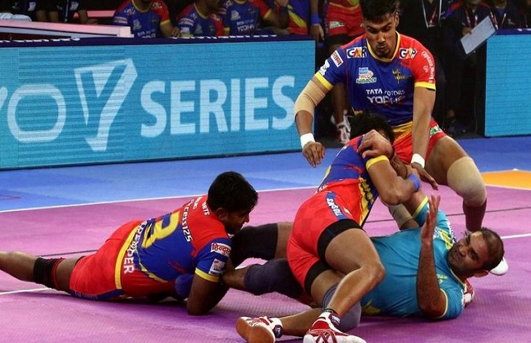 Pro Kabaddi 2018: पहले हाफ की समाप्ती पर गुजरात ने 27-18 से बढ़त बनाई हुई थी लेकिन दूसरे हाफ में…