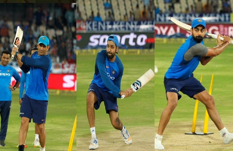 बीसीसीआई ने अपने ट्विटर हैंडल पर टीम के कप्तान विराट कोहली, रोहित शर्मा और महेंद्र सिंह धोनी की उल्टे हाथ…