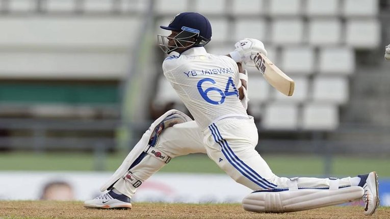 दूसरी पारी में यशस्वी जायसवाल ने तेज गति से बल्लेबाजी की और 41 गेंदों पर अर्धशतक लगाया।