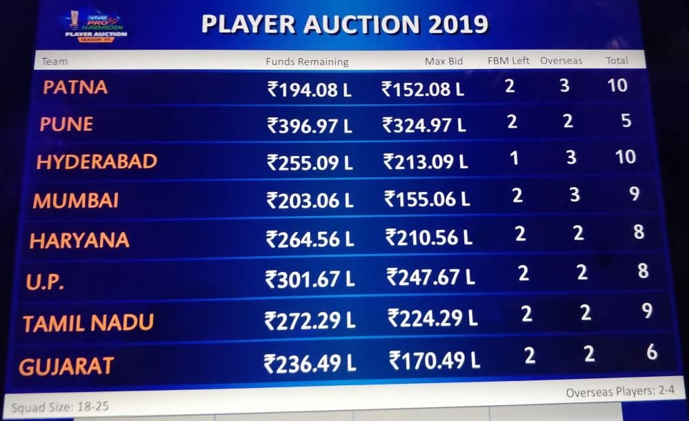 आपको बता दें कि पीकेएल के 7वें सीजन में सभी टीमें अपने स्क्वॉड में कम से कम 18 और ज्यादा से ज्यादा 25 खिलाड़ियों को शामिल कर सकती है। इसके अलावा हर टीम के पास कुल 4.4 करोड़ रुपये का बजट होगा।