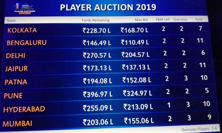बेंगलुरु बुल्स के खाते में सबसे कम 1.46 करोड़ रुपये बचे हैं।