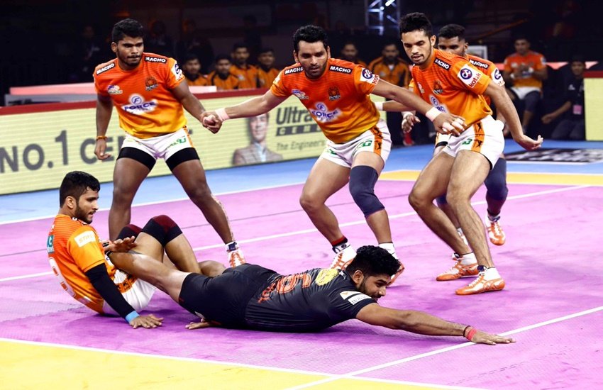 पहले हाफ के 9वें मिनट के दौरान ही पुणेरी पलटन की टीम ऑल आउट हो गई। पुणेरी के मैन रेडर नितिन तोमर लगातार दो बार आउट होकर बाहर लौटे।