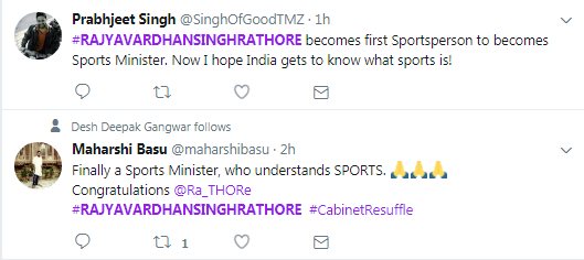 Good to @Ra_THORe as sports and youth affairs.. right man in the right place..#ModiTeam2019