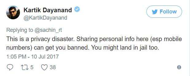 मास्टर ब्लास्टर सचिन तेंडुलकर क्रिकेट के भगवान कहे जाते हैं। लेकिन ट्विटर पर सोमवार को उनसे भी बहुत बड़ी गलती हो गई। दरअसल एक प्रमोशनल कैंपेन के दौरान सचिन ने ट्वीट कर उन लोगों के नंबर मांगे थे, जो फिट न रहने के लिए एक्सक्यूज देते हैं। इस कैंपेन का अजेंडा था कि सचिन कुछ लोगों से बात करके उन्हें प्रोत्साहित करेंगे। कुछ ही देर बाद लोग सचिन के ट्विट पर अपने दोस्तों के नंबर पोस्ट करने लगे। उन्होंने यह नहीं सोचा कि किसी भी सार्वजनिक जगह पर अपना नंबर पोस्ट नहीं करना चाहिए। अॉनलाइन स्पैमर्स और स्कैमर्स इन नंबरों का गलत फायदा उठा सकते हैं।
