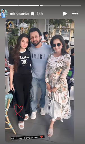 सानिया मिर्जा बीते वीकेंड पर दुबई में पाकिस्तानी सिंगर आतिफ असलम का कॉन्सर्ट देखने पहुंची। उन्होंने इंस्टाग्राम पर आतिफ की तस्वीर शेयर की और साथ ही स्टार का इमोजी भी शेयर किया। इसके बाद आतिफ असलम की पत्नी सारा ने सानिया के साथ तस्वीर शेयर की। तस्वीर में सानिया, आतिफ और सारा तीनों नजर आ रहे थे। सारा ने कैप्शन में लिखा, ‘अपने पसंदीदा लोगों के साथ।’ सानिया ने इस स्टोरी को अपने इंस्टाग्राम अकाउंट से भी शेयर किया।