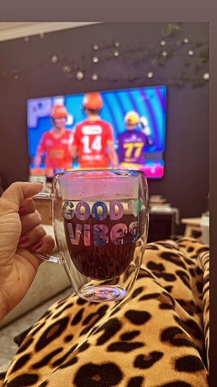 सानिया ने शुक्रवार रात को अपने इंस्टाग्राम पर तस्वीर शेयर की। इस तस्वीर में उनके हाथ में मग है जिसपर गुड वाइब्स लिखा है। सानिया के सामने टीवी चल रहा था। इस टीवी पर क्रिकेट मैच चल रहा था। यह पुरुष क्रिकेट का नहीं बल्कि महिला क्रिकेट का मैच था। सानिया महिला प्रीमियर लीग का मुकाबला देख रही थीं।