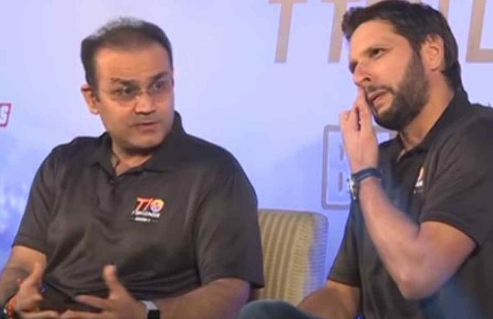 भारत और पाकिस्तान के बीच खेल के मैदान पर या उससे बाहर हमेशा कड़ी प्रतिस्पर्धा देखने को मिलती है। दोनों एक-दूसरे के खिलाफ विवादित बयान भी देते रहते हैं, लेकिन कुछ मौके ऐसे भी आए जहां दोनों खेल के मैदान से बाहर साथ दिखाई दिए हैं। वीरेंद्र सहवाग और शाहिद अफरीदी ने कुछ साल पहले टी10 टूर्नामेंट में साथ हिस्सा लिया था। उस दौरान दोनों ने साथ इंटरव्यू दिया था और कई खुलासे किए थे। अफरीदी ने कहा था कि भारतीय खिलाड़ियों को उन्होंने घर पर बुलाया था, लेकिन मुसीबत में फंस गए थे।