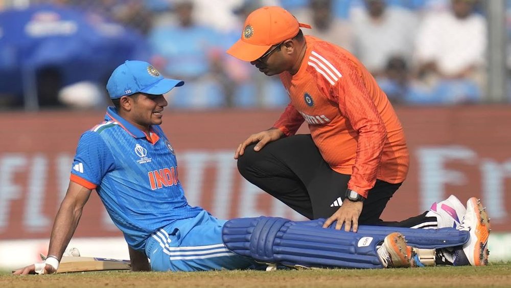 द इंडियन एक्सप्रेस के अनुसार भारतीय पारी में 23 ओवर की चौथी गेंद के बाद मैच रुका। शुभमन गिल काफी देर से क्रैम्प से जूझ रहे थे। फीजियो मैदान पर आए। उनका इलाज करने के थोड़ी देर बाद डगआउट की ओर इशारा किया कि गिल को रिटायर्ड हर्ट होना होगा। वानखेड़े में लगभग हर मैच में खिलाड़ियों को क्रैम्प आया है, लेकिन यह पहली बार है कि किसी ने मैदान। ग्लेन मैक्सवेल ने अफगानिस्तान के खिलाफ 201 रन की पारी क्रैम्प से जूझते हुए खेली थी।