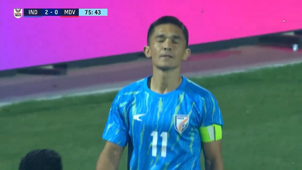 कप्तान सुनील छेत्री को 82वें मिनट में इरफान यादव ने रिप्लेस किया। इससे पहले भारत की ओर से राहुल भेके ने 35वें मिनट में गोल दागकर टीम को बढ़त दिलाई। इसके बाद लिस्टन कोलाको ने 66वें मिनट में स्कोर 2-0 कर दिया। पिछले साल मई में संन्यास लेने के बाद राष्ट्रीय टीम में लौटे 40 वर्षीय सुनील छेत्री ने इस दिन को यादगार बना दिया।