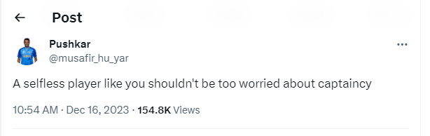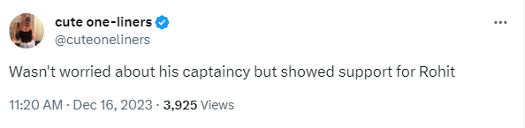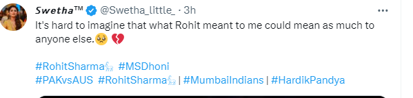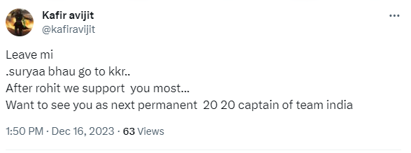 कुछ फैंस ने कमेंट करके सूर्यकुमार यादव से इस ट्वीट का कारण पूछा। वहीं कुछ ने लिखा कि सूर्यकुमार यादव को रोहित शर्मा की कप्तानी जाने का दुख है। एक यूजर ने यह भी लिखा कि सूर्यकुमार यादव को अगला टी20 वर्ल्ड कप जितकार रोहित शर्मा को तोहफा देना चाहिए। कुछ यूजर्स ने यह भी कहा कि सूर्यकुमार कप्तानी डिजर्व करते हैं।