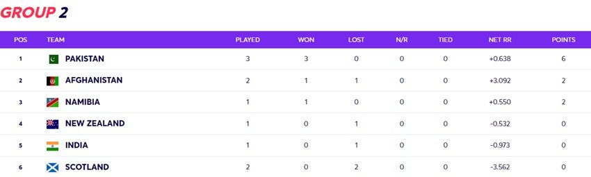 सुपर-12 में ग्रुप 2 में पाकिस्तान ने भारत, न्यूजीलैंड और अफगानिस्तान के खिलाफ जीत हासिल की है। उसे अब नामीबिया और स्कॉटलैंड से खेलना है। उसने जिस तरह से अब तक प्रदर्शन किया है, उसे देखते हुए उसकी इन दोनों टीमों के खिलाफ भी जीत तय मानी जा रही है।