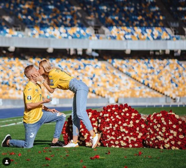 इस सोमवार यानी 14 अक्टूबर 2019 को यूरो 2020 क्वालिफिकेशन के मैच में यूक्रेन ने पुर्तगाल को 2-1 से हरा दिया। यह मुकाबला यूक्रेन की राजधानी कीव स्थित नेशनल स्टेडियम पर खेला गया था। इस मैच में यूक्रेन की जीत में 22 साल के ओलेकसैंद्र जिनचेनको ने भी अहम भूमिका निभाई थी। अपनी टीम की जीत के 2 दिन बाद इस मिडफील्डर ने उसी स्टेडियम पर गुलाब के फूलों के ढेरों के बीच उन्होंने अपनी गर्लफ्रेंड वाल्दा सेडान (Vlada Sedan) को प्रपोज किया।