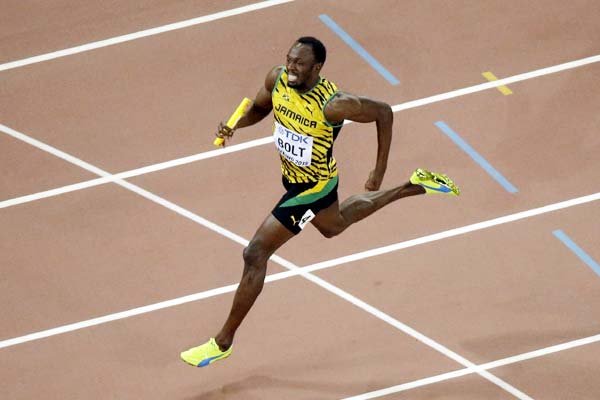 उसेन बोल्ट ने शनिवार को यहां जमैका की चार गुणा 100 मीटर दौड़ की टीम की अगुआई करके विश्व एथलेटिक्स चैंपियनशिप में अपना तीसरा स्वर्ण पदक जीता जबकि अमेरिका की टीम अयोग्य घोषित करार दी गई और चीन को रजत पदक मिला। बोल्ट ने बर्ड्स नेस्ट स्टेडियम में आखिरी चरण में तेज दौड़ लगाई जिससे जमैका की नेस्टा कार्टर, असाफा पावेल और निकेल अशेमडे की टीम 37.36 सेकेंड में दौड़ पूरी करके स्वर्ण पदक हासिल करने में सफल रही। बोल्ट का यह विश्व चैंपियनशिप में 11वां स्वर्ण पदक है।