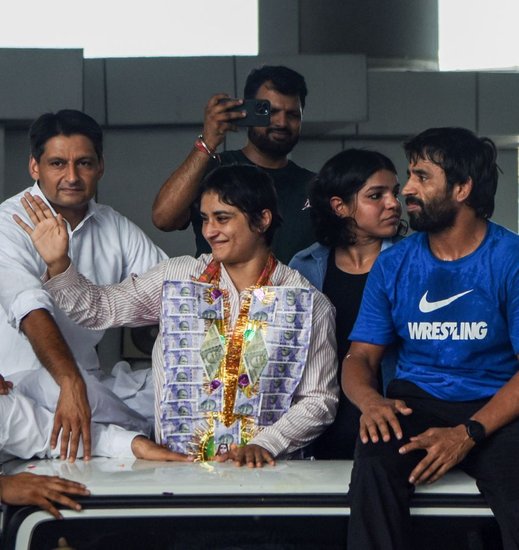एयरपोर्ट पर विनेश को लेने कई लोग पहुंचें जिसमें बजरंग पूनिया, साक्षी मलिक और विजेंदर सिंह शामिल थे। वहीं हरियाणा के कांग्रेस नेता दीपेंद्र हुड्डा भी एयरपोर्ट पर विनेश के साथ नजर आए। सिर्फ इतना ही नहीं विनेश जब अपने चाहने वालों को शुक्रिया कहने गाड़ी पर चढ़ीं तब दीपेंद्र हुड्डा भी उनके साथ नजर आए। यह रैली लगभग 14 घंटे बाद विनेश के गांव बलाली जाकर खत्म हुई। दीपेंद्र हुड्डा की मौजूदगी ने ही विनेश फोगाट के राजनीति में शामिल होने की खबरों को हवा दी।