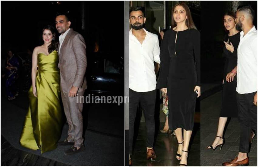 भारतीय टीम के एक्स फास्ट बॉलर जहीर खान की बीती रात मुंबई में सगाई हुई। लेकिन जहीर और सागरिका की इंगेजमेंट में दिलचस्प लम्हा वो रहा जब हर कोई कोहली की ओर देख रहा था। जी हां, इस पार्टी में आए गेस्ट की निगाहें सागरिका और जहीर खान पर कम बल्कि विराट कोहली और अनुष्का शर्मा पर ज्यादा टिकीं रहीं। पार्टी के दौरान कोहली अपनी गर्लफ्रेंड अनुष्का का हाथ थामे नजर आए। दोनों बेहद खूबसूरत लग रहे थे। पार्टी में जैसे ही अनुष्का शर्मा संग कोहली ने एंट्री की तो सभी उनकी ओर निहारने लगे। इस कपल को देखकर कोहली और अनुष्का दोनों के फैंस उनकी फोटो को सोशल मीडिया पर शेयर करने लगे। इस दौरान अनुष्का ब्लैक कलर के वनपीस और कोहली ब्लैक पेंट और व्हाइट शर्ट में नजर आए। दोनों ने एक दूसरे के हाथ पकड़ रखा था।