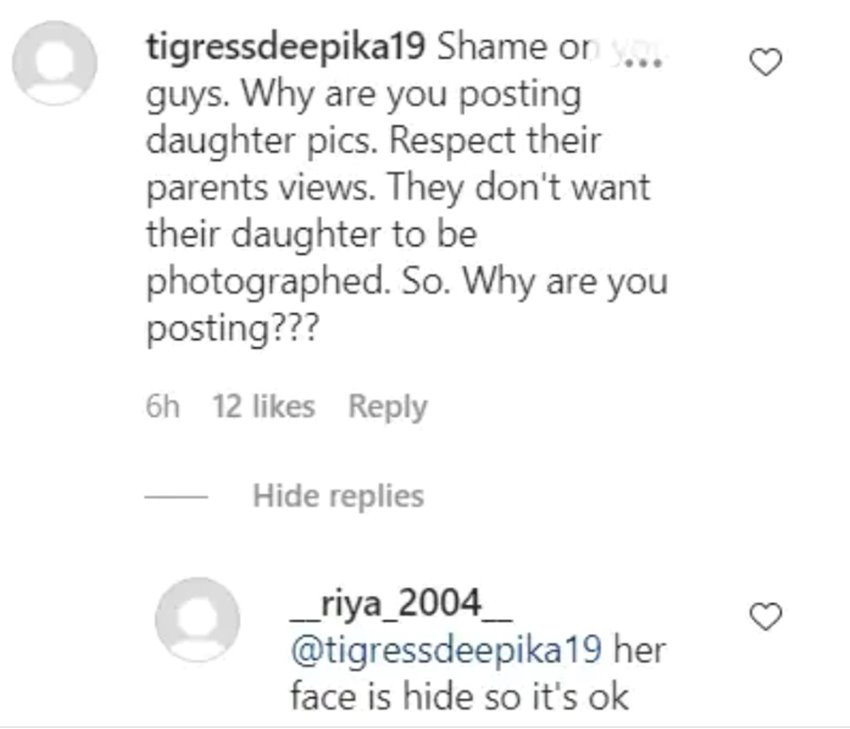 एक अन्य यूजर ने लिखा, ‘क्या आप कृपया उनसे उस पोस्ट को डिलीट करने के लिए कह सकते हैं। उन्होंने वामिका का चेहरा दिखाया है। मुझे नहीं पता भारतीय मीडिया कब समझदारी से काम लेगा। विराट और अनुष्का ने वामिका का चेहरा नहीं दिखाने का फैसला किया है। इस तरह वामिका की तस्वीर पोस्ट करना बहुत गलत है।’