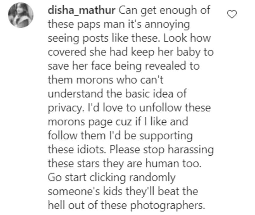 एक यूजर ने लिखा, ‘यह बिल्कुल पागलपन है। बार-बार वामिका की तस्वीर नहीं खींचने का अनुरोध करने के बावजूद ये पापराजी ऐसा करते रहते हैं। अब वे उनके सहमति के बिना उनका चेहरा दिखाते हुए तस्वीर भी पोस्ट कर रहे हैं? इन बेवकूफ मीडिया पोर्टल्स पर मुकदमा करो।’