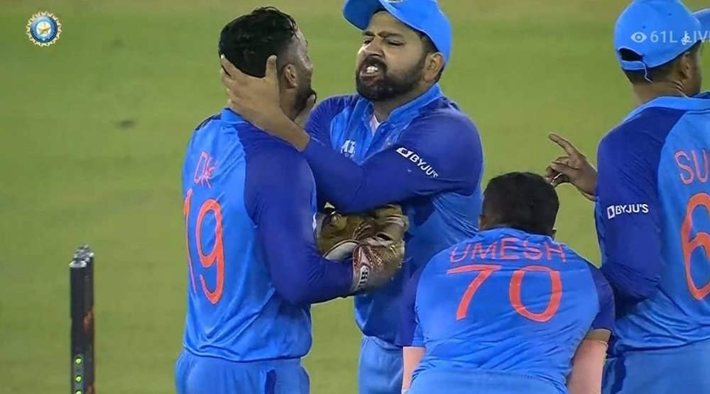 सातवें नंबर पर बल्लेबाजी के लिए आए दिनेश कार्तिक 5 गेंद में 6 रन बनाकर नाथन एलिस की गेंद पर एलबीडब्ल्यू हो गए। वहीं, ऑस्ट्रेलियाई पारी के दौरान विकेटकीपिंग करते हुए उनसे तीन गलितयां हुईं। शायद यही वजह रही है रोहित शर्मा ने एक बार तो मैच के दौरान ही उनका चेहरा पकड़ लिया। हालांकि, उन्होंने ऐसा मजाक में ही किया था। शायद वह कहना चाह रहे हों कि कुछ तो बता मेरे भाई।