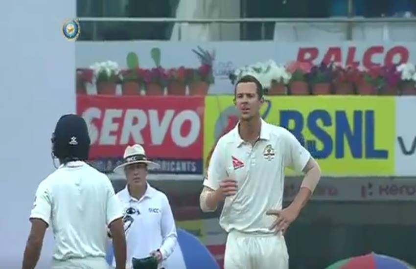रांची टेस्ट के चौथे दिन कंगारू टीम ने भारतीय खिलाड़ियों को उकसाने की कोशिश की। उस वक्त क्रीज पर भारतीय बल्लेबाज चेतेश्नवर पुजारा और रिद्धिमान साहा बैटिंग कर रहे थे। भारत उस वक्त अॉस्ट्रेलियाई के स्कोर से 61 रन पीछे था और उसके 4 विकेट शेष थे। जब पुजारा और साहा की साझेदारी को तोड़ने का कोई रास्ता कंगारू टीम को नहीं दिखा तो उन्होंने स्लेजिंग का सहारा लेना शुरू कर दिया। दिन के दसवें ओवर में अॉस्ट्रेलियाई गेंदबाज जॉश हेजरवुड ने साहा को एक बाउंसर फेंकी। लेकिन साहा शायद इस गेंद को उतने बेहतर तरीके से नहीं खेल पाए, जिसके बाद हेजलवुड ने साहा से रक्षात्मक रवैया छोड़ने को कहा। इसके जवाब में साहा ने हेजलवुड से कहा कि वह दूसरे छोर पर जाएं और बॉलिंग करें। इसके बाद अंपायर को आकर बीच-बचाव करना पड़ा।