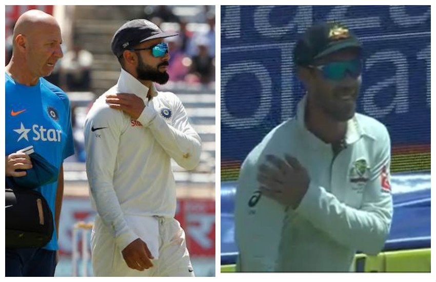 रांची टेस्ट में भारतीय कप्तान विराट कोहली कंधे में चोट लगने के बावजूद रांची टेस्ट के तीसरे दिन बल्लेबाजी के लिए मैदान में उतरे थे। हालांकि, वो कुछ खास देर विकेट पर नहीं टिक पाए और मात्र 6 रन बनाकर तेज गेंदबाज पैट कमिंस की गेंद पर स्लिप में स्टीव स्मिथ द्वारा लपके लिए गए। विराट के आउट होने के बाद आॅस्ट्रेलियाई खिलाड़ियों ने उनकी चोट को लेकर उनका मजाक बनाया था। लेकिन क्या आप जानते हैं कि कुछ वर्ष पहले भी भारत और अॉस्ट्रेलिया के बीच एेसी ही घटना हुई थी। उस मैच में कंगारू टीम के अॉलराउंडर शेन वॉटसन पैर में चोट से जूझ रही थी। बावजूद इसके उन्होंने बैटिंग की। लेकिन भारतीय फील्डरों सुरेश रैना और शिखर धवन उनका मजाक उड़ाते देखे गए थे। वीडियो में साफ देखा जा सकता है कि रैना कैसे अपना पैर देख रहे थे। वहीं धवन यूंही लंगड़ाते हुए चल रहे थे।