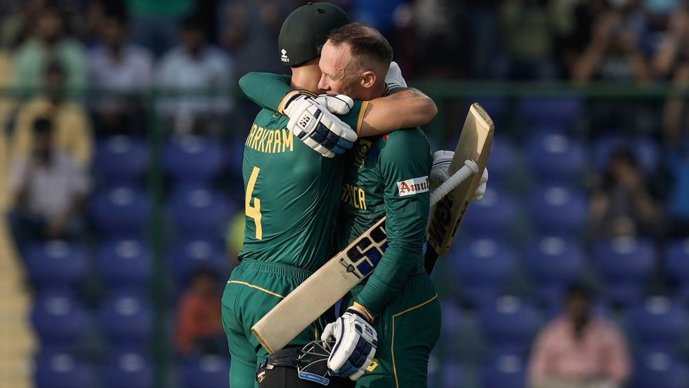 दक्षिण अफ्रीका ने सारे रिकॉर्ड ध्वस्त करते हुए विश्व कप के इतिहास का सबसे बड़ा स्कोर अपने नाम कर लिया है। 428/5 के स्कोर में दक्षिण अफ्रीका की तरफ से तीन बल्लेबाजों ने शतक लगाया। क्विंटन डीकॉक (100) रासी वेड डेर डुसेन (108) और एडन मार्करम (106) ने शतकीय पारी खेली। एडन मार्करम के शतक ने विश्व कप का एक रिकॉर्ड भी तोड़ा। दरअसल, उनकी सेंचुरी विश्व कप इतिहास की सबसे तेज सेंचुरी थी। मार्करम ने सिर्फ 49 गेंद पर अपना शतक पूरा कर लिया। इस शतकीय पारी में मार्करम ने 14 चौके और 3 छक्के लगाए। वहीं दक्षिण अफ्रीका की पूरी पारी में कुल 14 छक्के लगे।