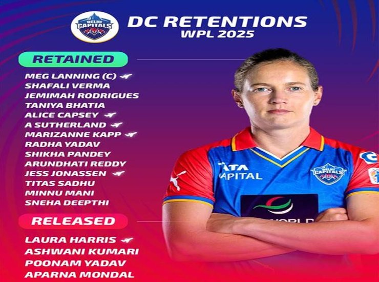 DC द्वारा WPL 2025 के लिए रिटेन किए गए खिलाड़ियों के नाम
