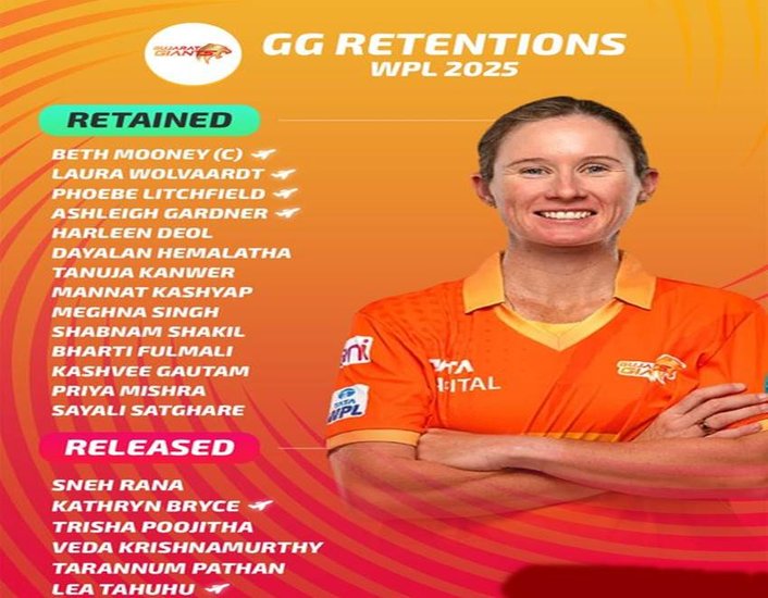 GG द्वारा WPL 2025 के लिए रिटेन किए गए खिलाड़ियों के नाम