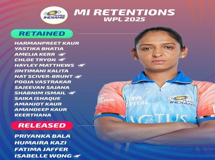 MI द्वारा WPL 2025 के लिए रिटेन किए गए खिलाड़ियों के नाम